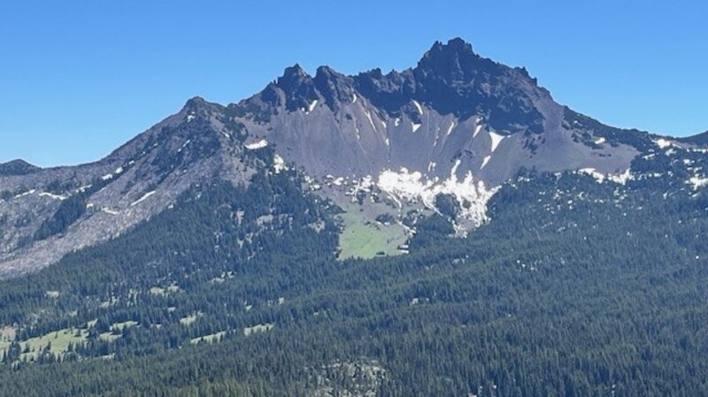 On June 15, 2024, the weather was cool with the temperature in the thirties at 9 am. The hike to the rim had some light snow as well as older snow patches left over from winter to traverse. At the view point, although very beautiful with views of East Lake, Paulina Peak and Paulina Lake, the wind was blowing and the wind chill was well below freezing. Hikers didn't last long admiring the setting.