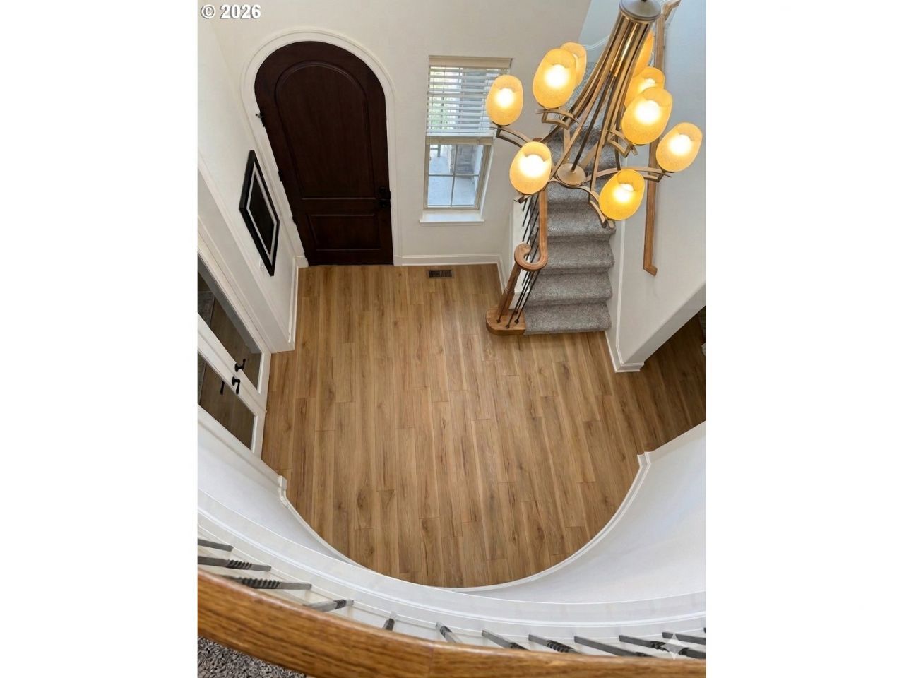 Located in the desirable Villebois neighborhood of Wilsonville, this move-in-ready 2007 Legend home offers a versatile 4-bedroom, 3-bathroom floor plan with a main-floor flex room ideal for a home office, den, or playroom. The open-concept mainlevel features naturally lit kitchen, dining, and living area anchored by a cozy gas replace-perfect for everyday living andentertaining. Recent upgrades include new luxury vinyl plank (LVP) flooring throughout the main level, new carpet upstairs,professionally painted interiors, new appliances, and a new hot water heater. Upstairs, the spacious primary suite boasts vaultedceilings, an en-suite bath with soaking tub and separate shower, plus a generous his-and-her walk-in closets. Three additionalbedrooms and a convenient laundry room complete the upper level. Outside, the large yard is fully turfed for zero maintenance,providing a hassle-free space for play, relaxation, or gatherings. Just steps from Lowrie Primary School and with easy access to neighborhood parks and scenic walking paths, this family-friendly home delivers comfort, modern convenience, and an exceptional Villebois location.