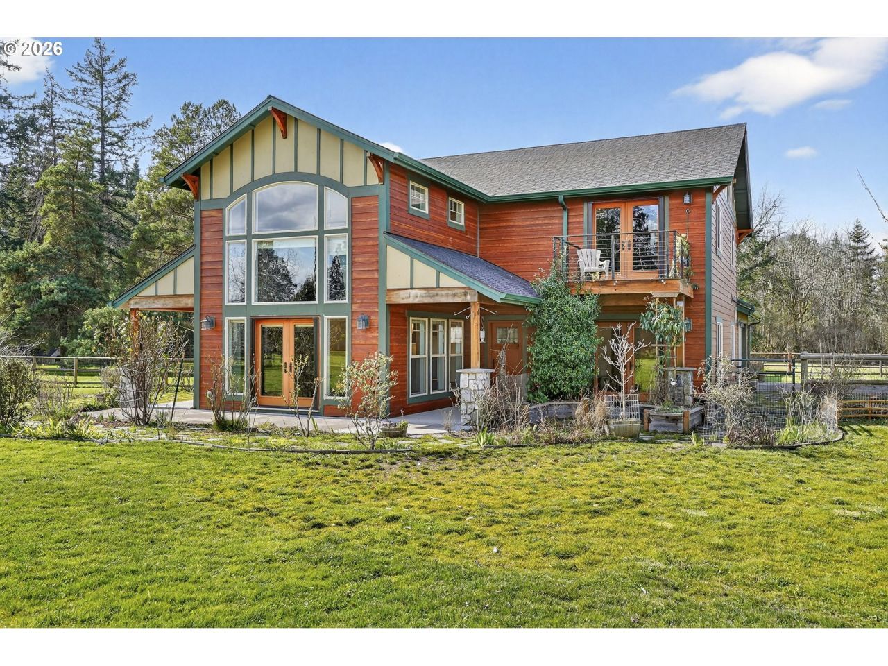 Exceptional 2017-built home on 6 fully fenced acres-ideal for country living and serious equine pursuits.This 2,889sqft residence offers 3beds,3baths and an open,light-filled floorplan anchored by vaulted ceilings and a wall of windows with scenic views of pastures,pond,greenhouse and chicken coop from nearly every vantage. The main-level primary suite features dual brass sinks,jetted tub,walk-in closet and French doors to the fenced yard.The cook's kitchen opens to dining and living areas and is appointed with stainless appliances, gas cooktop, brass undermount farm sink,large prep island and two walk-in pantries. The living area centers on a substantial stone fireplace and flows easily to outdoor spaces for entertaining and everyday enjoyment.Upstairs includes two bedrooms,office space,a full bath, abundant storage and a bonus family room with balcony overlooking the property-perfect for lounging,games or a reading nook.Quality finishes include hardwood floors,abundant natural light, central vacuum,attached garage and a backup generator. Equine infrastructure is outstanding:a 60??120 indoor arena with attached viewing lounge and restroom and laundry;stables configured to accommodate up to 21 stalls (many currently doubled for comfort);tack room, wash rack/cross-ties;three-stall run-in pasture; and dedicated hay/shavings storage.Cottage guest quarters 1,278sqft provide ideal space for extended family,a trainer/clinician,artist studio or a home office.Additional farm features include greenhouse,raised beds,lean-to implement storage,charming chicken coop and a picturesque pond.Eagle Creek is known for its scenic rural character,and easy access to outdoor recreation-nearby hiking and riding trails,river access, and close proximity to Mt.Hood with convenient access-approximately 30 minutes to Oregon City.Move-in ready and perfectly positioned for boarding,training or breeding operations.Exceptional value for serious horse people seeking in place facilities.