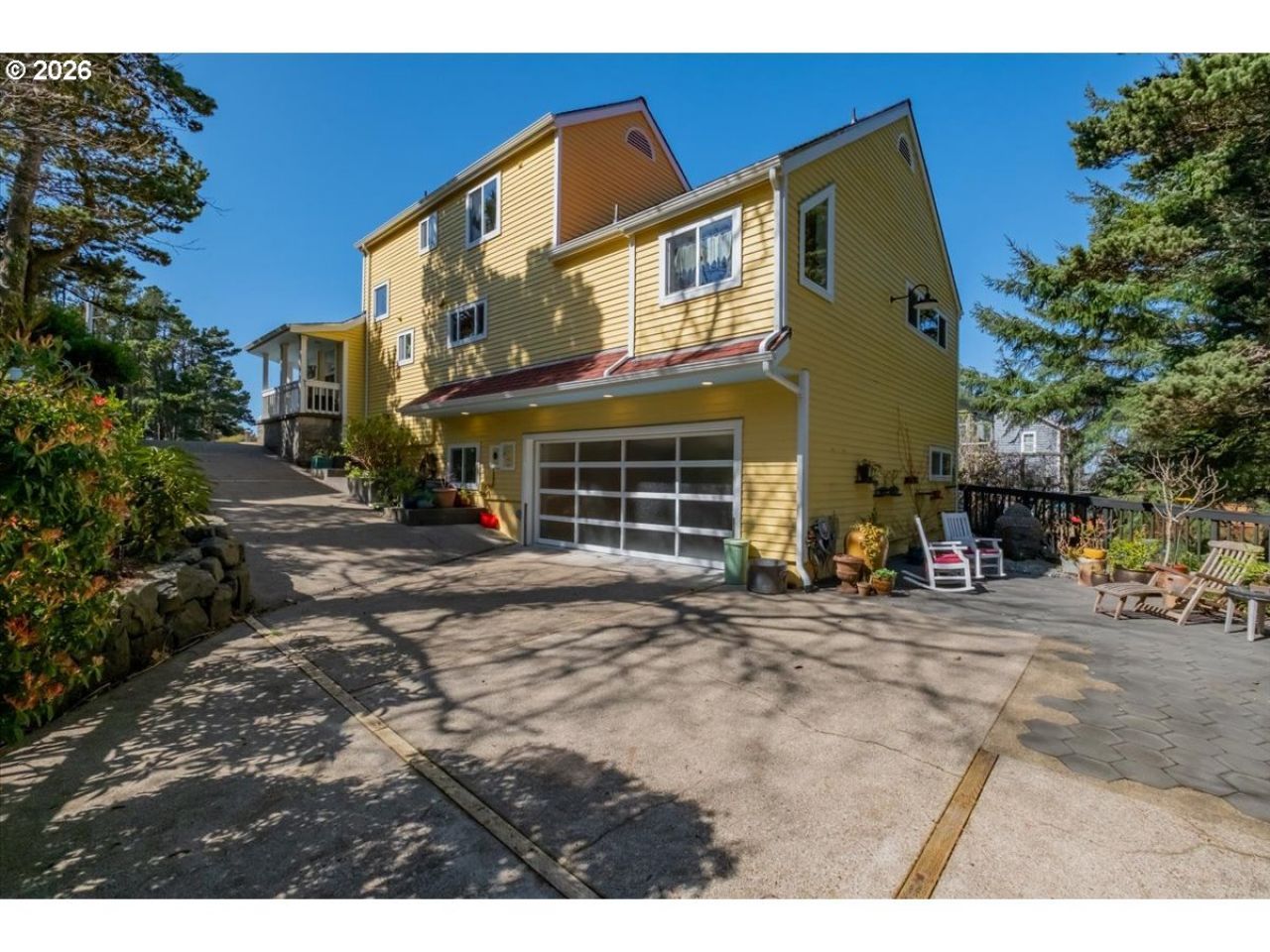 This isn't just a home - it's a rare front-row seat to the untamed beauty of the Central Oregon Coast. Enjoy sweeping views of Agate Beach and Yaquina Head Lighthouse from your deck perched above the rugged shoreline. Inside and out, every detail reflects luxury living with a complete high-end remodel.The meticulously crafted kitchen by Pacific Design features an AGA Elise induction range and hood, built-in Miele refrigerator, espresso maker, steam oven, and two Fisher & Paykel dishwasher drawers. Soapstone countertops, hidden tele-riser storage cabinets, a Native Trails hammered copper sink, and Shou Sugi Ban Japanese cedar accents bring warmth and sophistication together.The main-level primary suite is a true retreat with vaulted ceilings, patio access, a walk-in closet, and a fully remodeled spa-inspired bathroom. Relax in the Japanese soaking tub or enjoy the Ann Sacks tiled steam shower, heated tile floors, and dual glass Robern vanities with Native trails sinks.Thoughtful upgrades are found throughout, including a new electrical panel with generator hookup, new interior and exterior paint, commercial-grade roof, triple-pane windows, Rais gas stove, custom tile work, and refinished wood floors. The expanded laundry room includes a custom dog wash, while the oversized garage features a full-view glass door.Additional highlights include an expanded loft/4th bedroom with stunning views, custom lighting, Hunter Douglas window coverings, landscaped grounds with lighting and drip system, multiple patio spaces, and a fully fenced yard that has great privacy.This is a rare opportunity to own a one-of-a-kind luxury coastal property with breathtaking views.