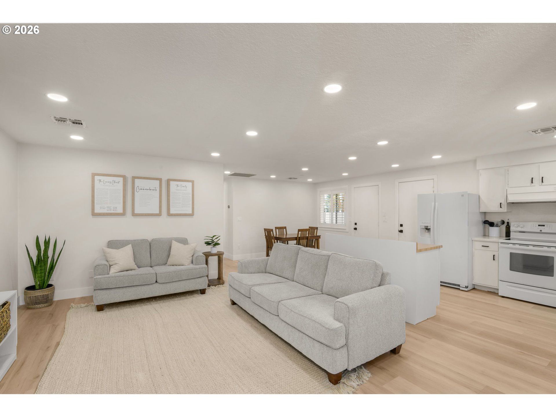 OPEN HOUSE SAT APRIL 11th from 1-3PM. Home has been professionally pre-inspected for Home/Sewer/Radon for a smooth transaction. Beautiful single-level home featuring a spacious, fully fenced backyard that backs to a peaceful blueberry farm-offering privacy and scenic views. Inside, you'll find thoughtful updates throughout. The bathroom was extensively remodeled in 2022 with a new tub, shower head, vanity, faucet, tile flooring, fan, some plumbing and updated hardware. Additionally in 2022: Luxury vinyl plank flooring flows through the kitchen, living room, dining area, & hallway, while the bedrooms feature plush carpet. Other upgrades that year included new baseboards, fresh interior paint, updated doorknobs, and ceiling fans with lighting in each bedroom. Recessed lighting brightens the rest of the home for a clean, modern feel. Major system improvements in 2023 include a new central air AC, central air heat (with heat coils), blown-in attic insulation, and a new garage door opener-providing comfort and efficiency for years to come.