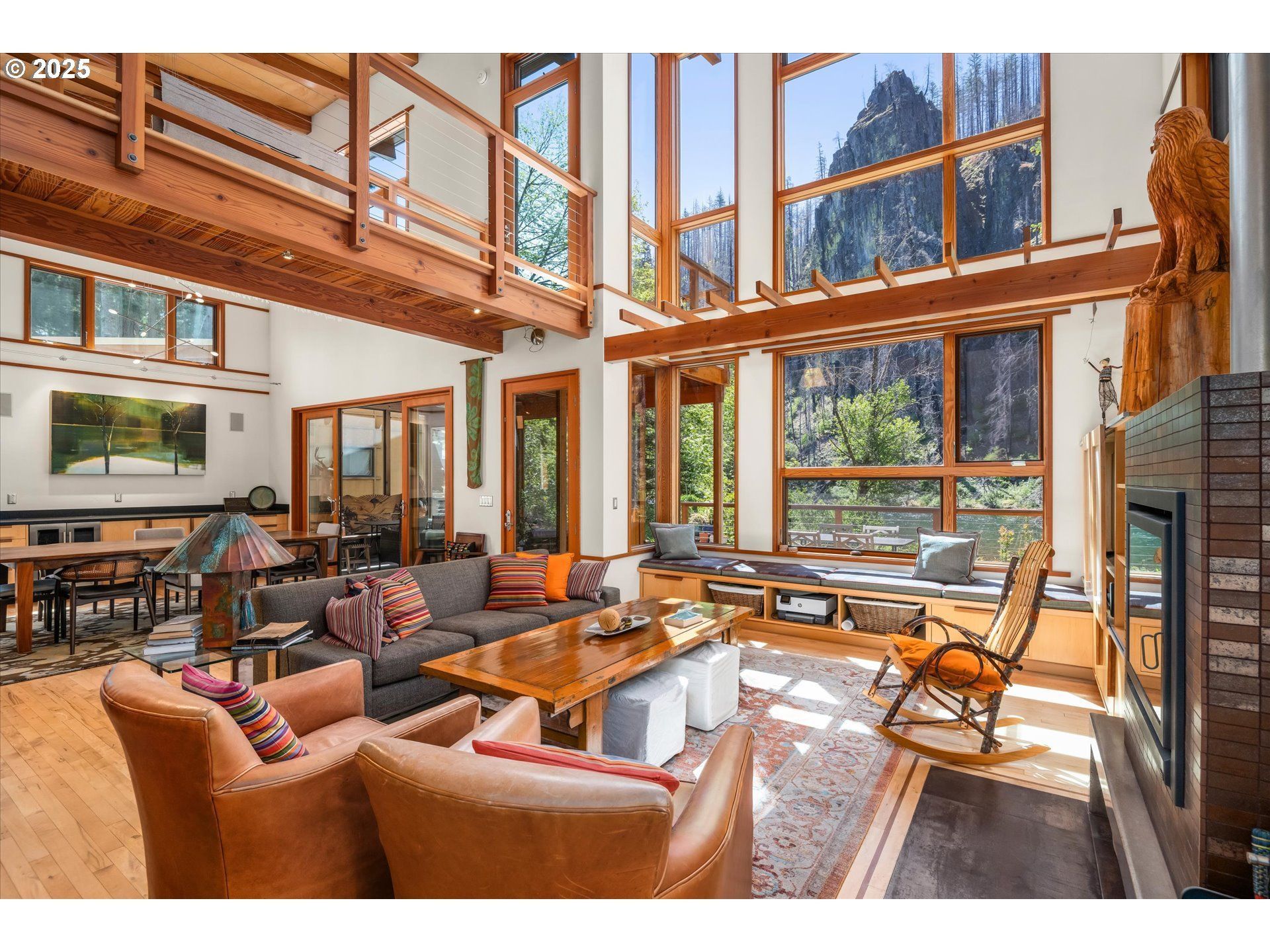 Featured in Oregon Home Magazine, this extraordinary riverfront retreat along the McKenzie River is a masterclass in thoughtful design, sustainability, and heartfelt legacy. Custom-designed and inspired by the owner's multi-generational connection to the land, this one-of-a-kind home blends architecture, artistry, and Oregon's natural beauty.Instead of a traditional floorplan, the home unfolds in a unique 'pod design-three detached structures that provide the perfect balance of togetherness and privacy. Each sleeping pod features spa-like bathrooms with sunken concrete tubs, serene views of Eagle Rock or the surrounding old-growth Douglas firs, and access to private decks nestled in the trees.At the heart of the home is the central pod: a dramatic, light-filled gathering space with a gourmet kitchen, spacious dining area, and inviting living room. A custom window seat captures breathtaking views of Eagle Rock, while a screened porch and catwalk-style deck create a seamless connection to the outdoors.Sustainable features include rainwater collection cisterns, operable windows for passive cooling, recycled PaperStone countertops, and thoughtful site design that preserves mature trees. Salvaged beams from the original A-frame cabin have been lovingly repurposed into the new structure, honoring the past while embracing the future.Whether as a primary residence or a vacation haven, this home offers a rare opportunity to experience timeless design, natural serenity, and enduring connection to one of Oregon's most scenic rivers.