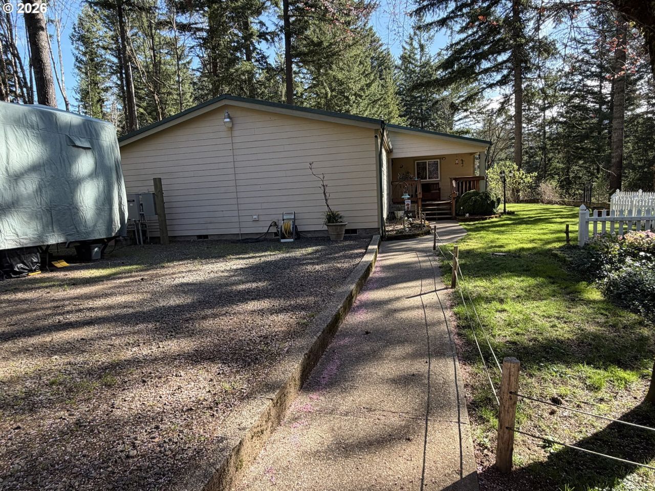 Nestled in the quaint, quiet, and wooded neighborhood of Eagle Rock-just across the street from the McKenzie River-this 2+ acre, clean and move-in ready gem won't last long. Tucked away on 2.03 private acres, this beautiful 4-bedroom, 2-bath home offers peaceful living with easy access to fishing, hiking, and rafting. The home features thoughtful updates throughout, including but not limited to newly painted and carpeted throughout the interior, a stylish kitchen with quartz countertops and stainless steel appliances. High ceilings and a cozy pellet stove create a warm and inviting living space. The spacious primary suite includes a private bathroom and walk-in closet. Built for both comfort and durability, the home includes a metal roof, fire-resistant fiber cement siding, Alpine windows with a lifetime warranty. Plus, a backup generator with a 5-year warranty, capable of powering the entire home when needed. The property also features a full RV hookup and benefits from minimal light pollution, offering exceptional stargazing in a truly balanced, serene environment. Outside, the property shines with mature landscaping, fruit trees, and a dedicated garden area, along with multiple outbuildings and an oversized garage/shop providing ample space for hobbies, storage, or projects. Two separate enclosed areas for the pups offer flexibility, or open one of the gates to create one larger enclosed space. Enjoy stunning views of Eagle Rock from this private and scenic retreat.