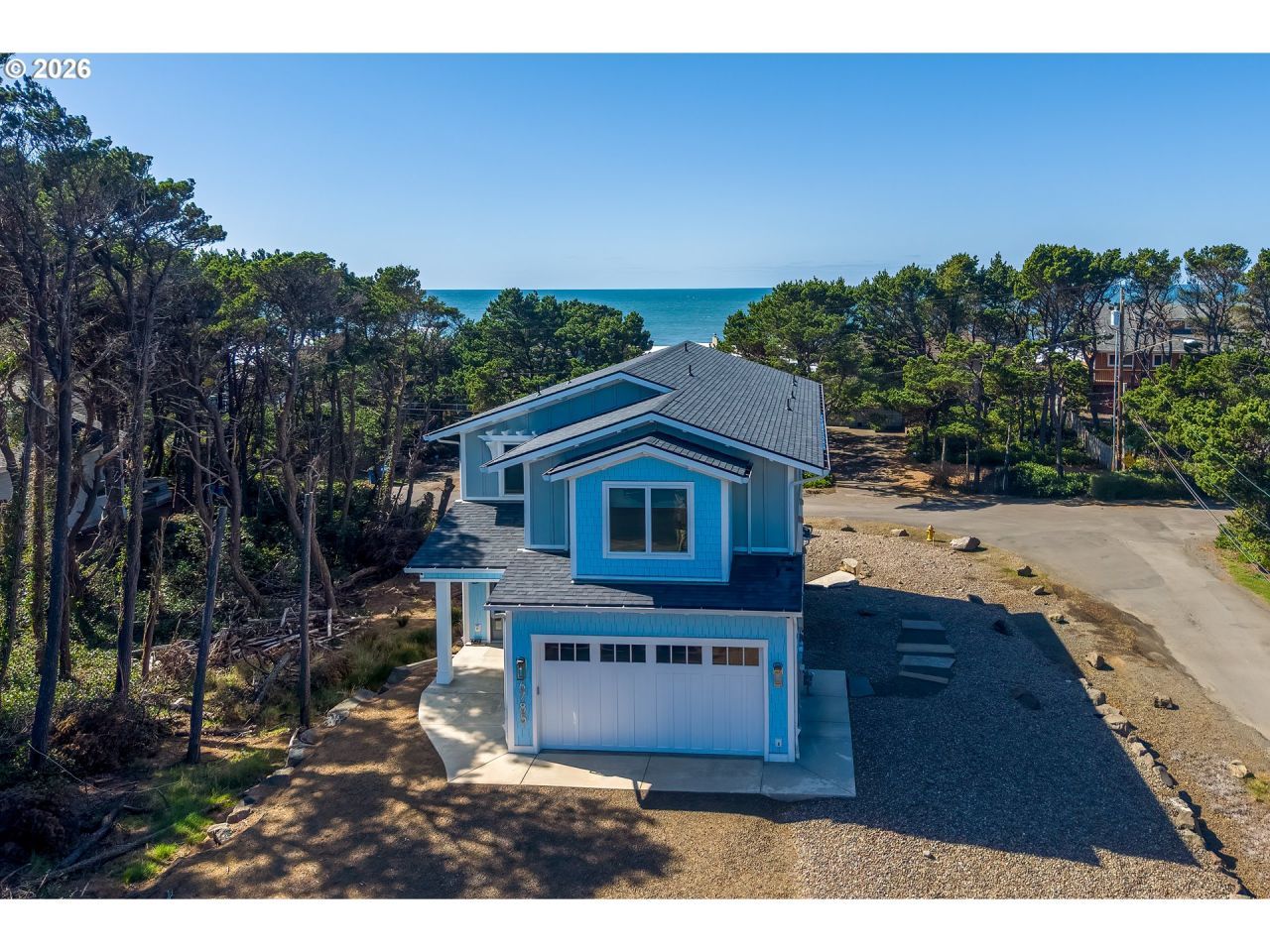 The Ocean is calling, You should go! Unparalleled construction & beauty make this Gleneden Beach home a retreat w/ room for everyone! The top floor = comfort. The primary suite serves as your private retreat, featuring sliding doors that stack onto each other allowing the balcony a wider open space with ocean views & coastal breezes-perfect for morning coffee or unwinding at sunset. The appointed guest bedroom is just down the hall with it's own bath a step away, 3rd room is a custom bunk room w/ on-suite and WI closet for storage. Eight built-in bunks w/ extra long twin mattresses, drawers underneath as well as on the steps to the upper bunks, it's the ultimate setup for kids/guests. This space is designed for making lasting memories. The Heart of the Home on the main level features a bright, open-concept design that seamlessly connects the kitchen and living areas, LED lighting throughout the home gives that extra pop. Gourmet kitchen features Cambria Quartz, double ovens, induction stove top, built in dishwasher & super quiet disposal. The fridge has a matching freezer w/ built in ice. Ready for everything from quick beach snacks to holiday dinners, the breakfast nook table has the ability to extend to fit up to 16 around it with additional seating for 6 at the island. Gas fireplace adds warmth for cozy coastal evenings. Expansive multi-panel sliding doors stack neatly to one side-opening much wider than traditional sliders-and lead to the solid-surface decks, creating a true indoor-outdoor living experience filled with natural light and ocean air. The home does not stop there, the flexible Lower Level of this home is self-contained. Currently featuring a wet bar, island and cabinetry, living area, bedroom, bathroom, and laundry it offers wonderful flexibility for long-term guests, adult children, or a private home office or creative space. Mechanical room is on this level housing the Rinnai tankless water, Broan ducted heat recovery ventilator. Smart home.