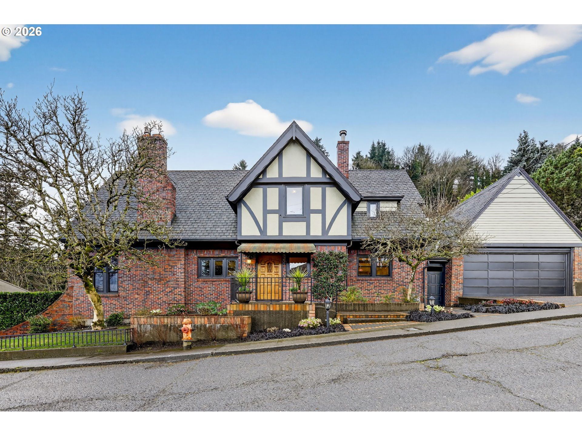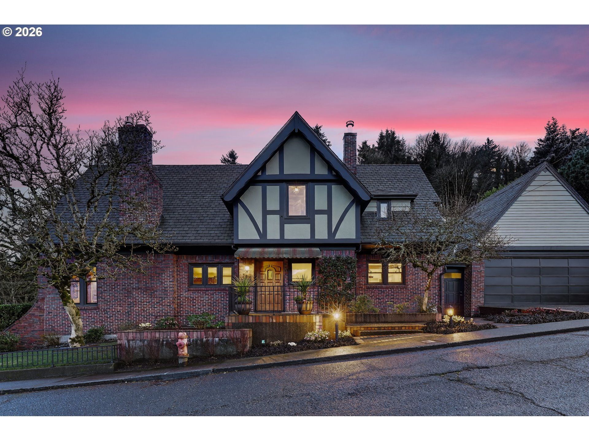 Exquisite 1932 English Tudor in pristine condition, offering views of the Portland skyline, Mt. Hood and Mt. St. Helens from its setting in one of the city's most sought-after historic neighborhoods. Forest Park's trail system is just outside your door, while the boutiques, caf?s, and cultural destinations of NW 23rd Avenue and the Pearl District are only minutes away. Classic architectural details have been beautifully preserved, including inlaid hardwood floors, wrought iron banisters, rich mahogany trim, distinctive clinker brick, and a Batchelder tile fireplace surround. The gourmet kitchen is thoughtfully appointed with a French La Cornue range, Sub-Zero refrigerator, Bosch dishwasher, custom cabinetry, quartz countertops and artisan tilework. A stunning primary suite captures Mt. Hood sunrise views, complemented by remodeled baths, inviting gathering spaces that open to spacious decks, and meticulously landscaped grounds with a rare level backyard, creating a home that is both timeless and move-in ready for spring. OPEN HOUSE SUNDAY, 4/5, 1:00-3:00. [Home Energy Score = 4. HES Report at https://rpt.greenbuildingregistry.com/hes/OR10245081]